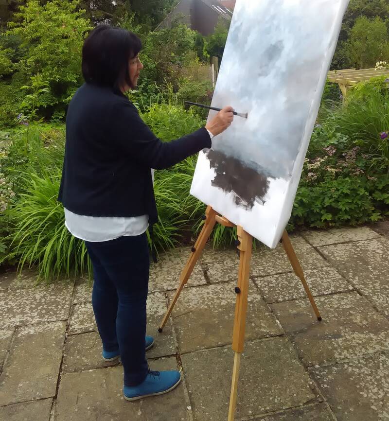 Schilderijen over weefplanten en herinneringen waarin materialen zoals draad, kant en oud papier verwerkt worden, maken dit aanschouwelijk.